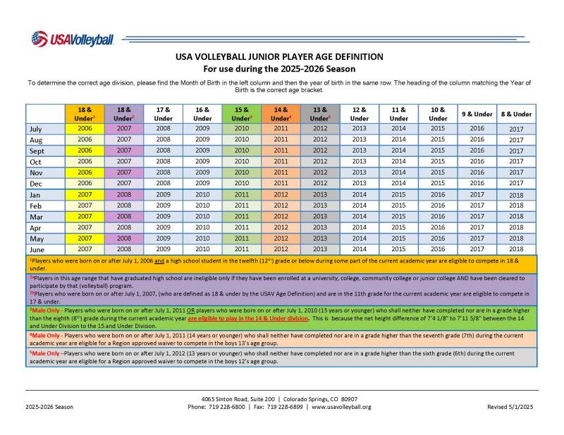 Please refer to the chart below to determine which team your daughter will try out for applicable to the 2024-2025 club season